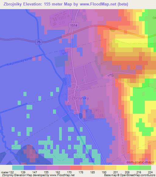 The maps also provides idea of topography and contour of Zbrojniky,Slovakia.