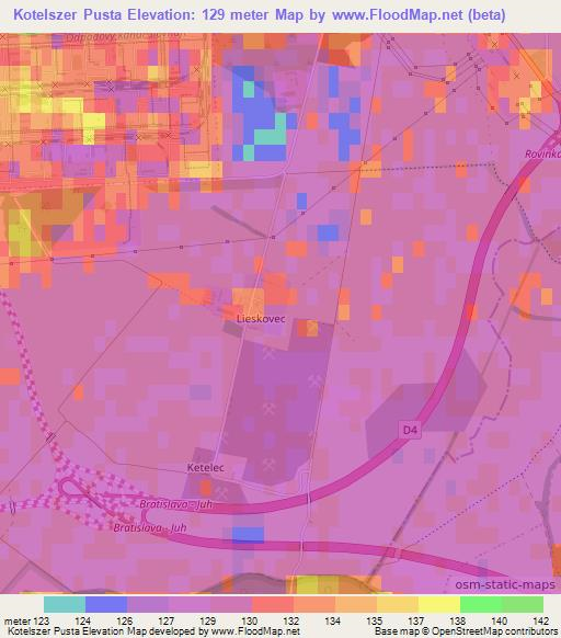 Kotelszer Pusta,Slovakia Elevation Map is displayed at different zoom levels.