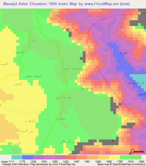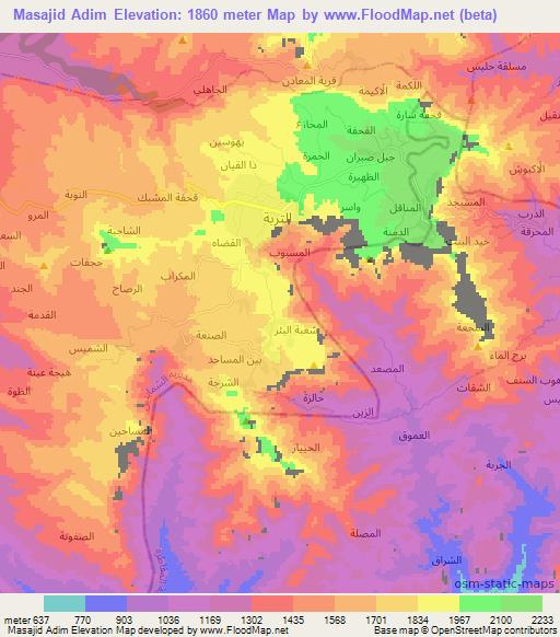 Note:Please note that Masajid Adim,Yemen Elevation Map is in beta.