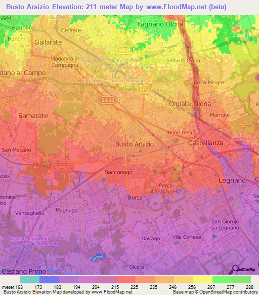Note:Please note that Busto Arsizio,Italy Elevation Map is in beta.