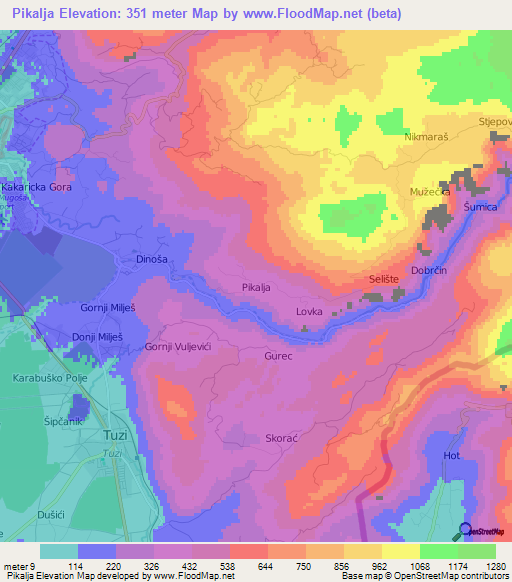 This Pikalja,Montenegro Elevation Map is licensed under CC BY-SA.