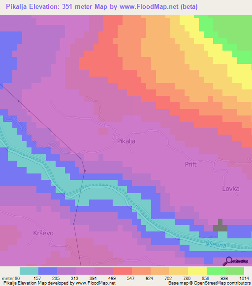 Note:Please note that Pikalja,Montenegro Elevation Map is in beta.