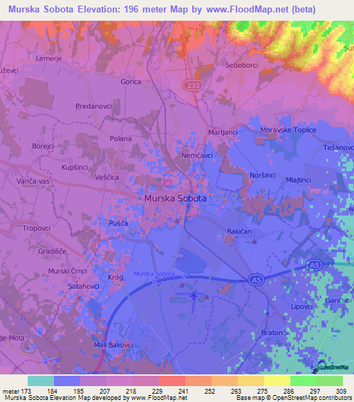 Note:Please note that Murska Sobota,Slovenia Elevation Map is in beta.