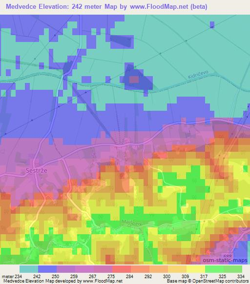 Medvedce,Slovenia Elevation Map is displayed at different zoom levels.