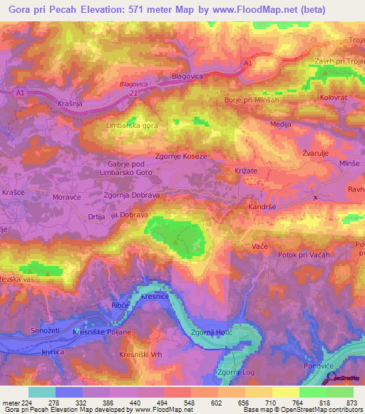 Note:Please note that Gora pri Pecah,Slovenia Elevation Map is in beta.