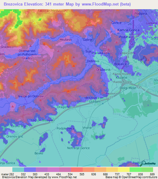 Note:Please note that Brezovica,Slovenia Elevation Map is in beta.
