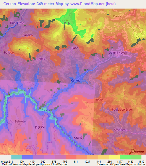 Note:Please note that Cerkno,Slovenia Elevation Map is in beta.