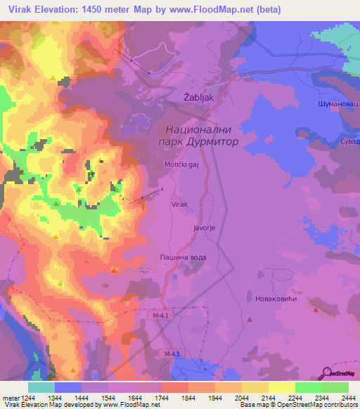 Note:Please note that Virak,Montenegro Elevation Map is in beta.