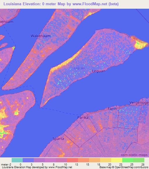 Note:Please note that Louisiana,Guyana Elevation Map is in beta.
