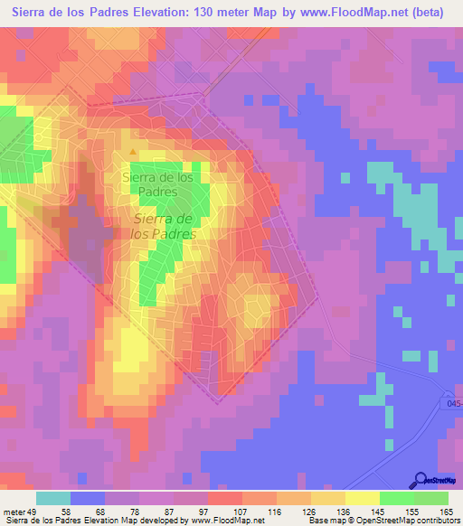 Below is the Elevation map of Sierra de los Padres,Argentina, which displays range of elevation with different colours.
