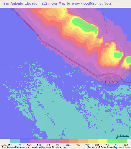 Below is the Elevation map of San Antonio,Bolivia, which displays range of elevation with different colours.