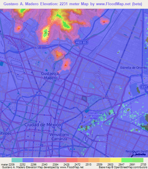 Note:Please note that Gustavo A. Madero,Mexico Elevation Map is in beta.