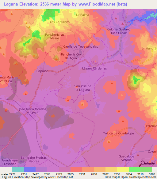 Note:Please note that Laguna,Mexico Elevation Map is in beta.