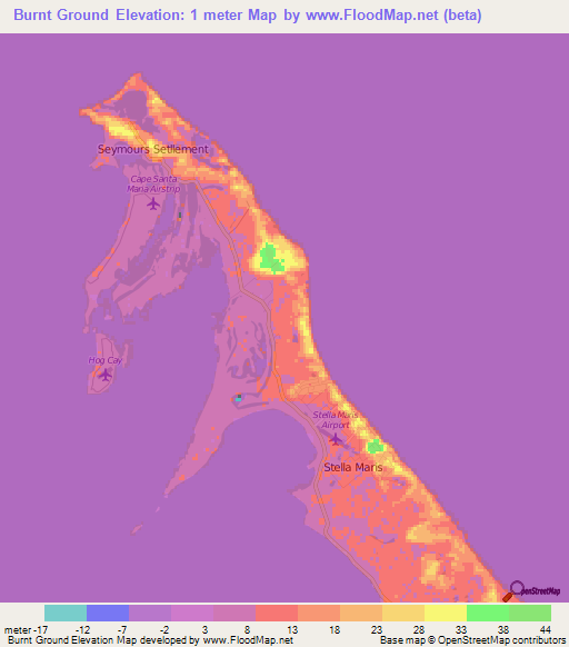 Note:Please note that Burnt Ground,Bahamas Elevation Map is in beta.