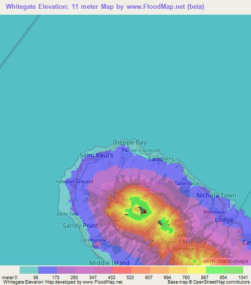 Note:Please note that Whitegate,Saint Kitts and Nevis Elevation Map is in beta.