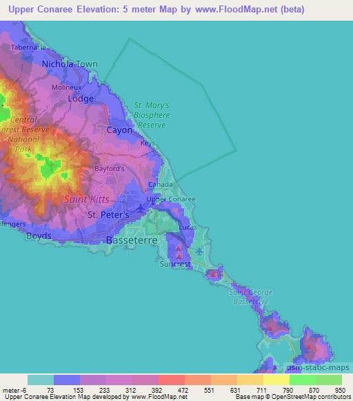 Note:Please note that Upper Conaree,Saint Kitts and Nevis Elevation Map is in beta.