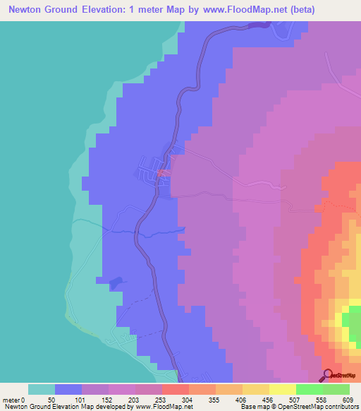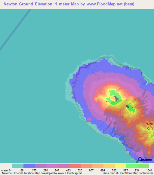 Note:Please note that Newton Ground,Saint Kitts and Nevis Elevation Map is in beta.
