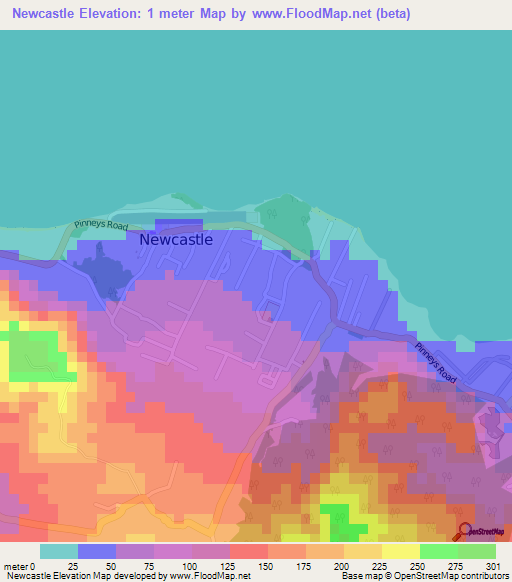 Note:Please note that Newcastle,Saint Kitts and Nevis Elevation Map is in beta.