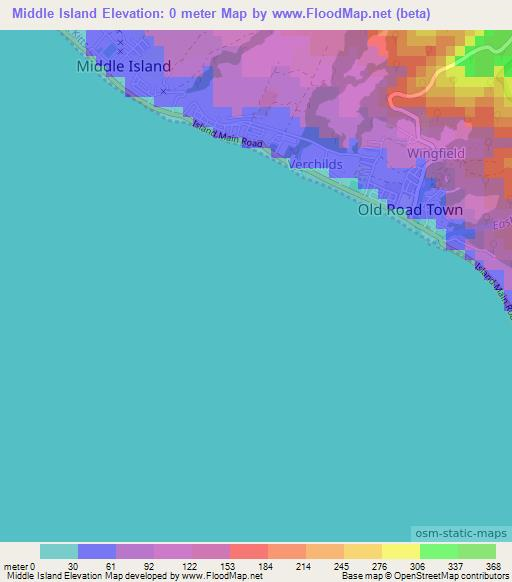 Note:Please note that Middle Island,Saint Kitts and Nevis Elevation Map is in beta.
