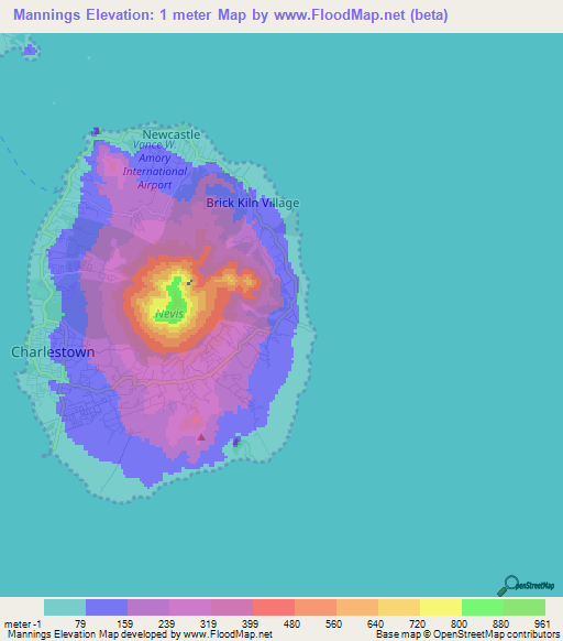 Note:Please note that Mannings,Saint Kitts and Nevis Elevation Map is in beta.