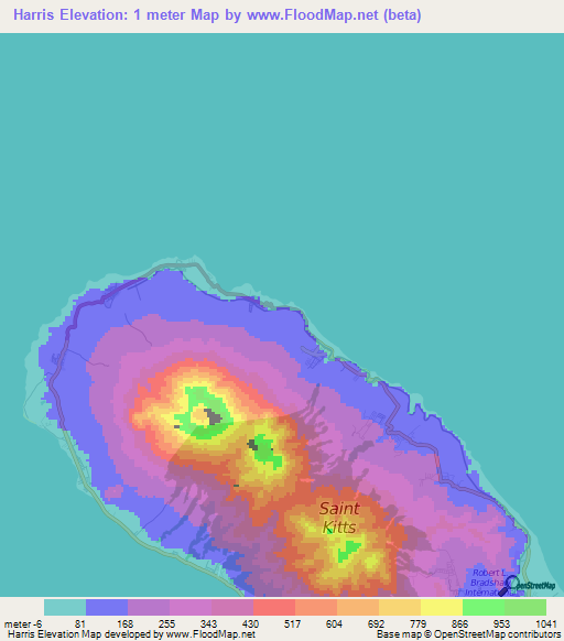 Note:Please note that Harris,Saint Kitts and Nevis Elevation Map is in beta.