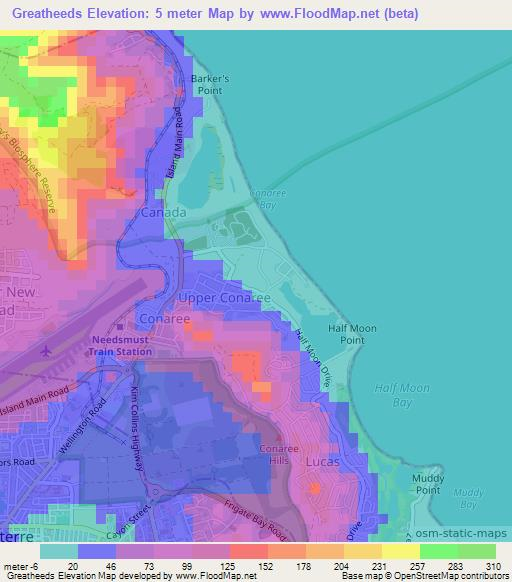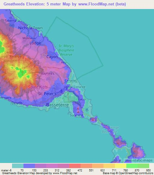 Note:Please note that Greatheeds,Saint Kitts and Nevis Elevation Map is in beta.
