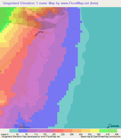 Below is the Elevation map of Gingerland,Saint Kitts and Nevis, which displays range of elevation with different colours.