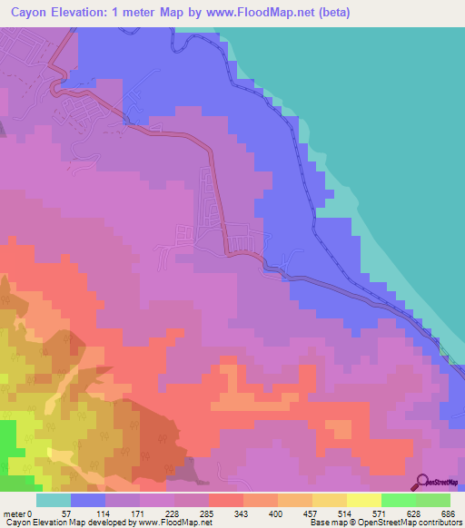 Note:Please note that Cayon,Saint Kitts and Nevis Elevation Map is in beta.