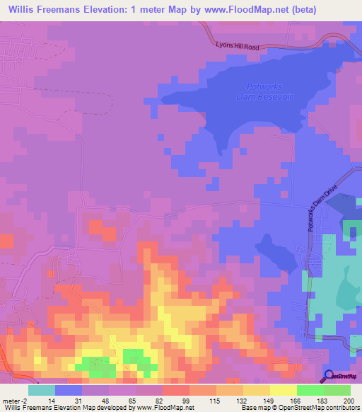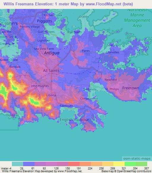 Note:Please note that Willis Freemans,Antigua and Barbuda Elevation Map is in beta.