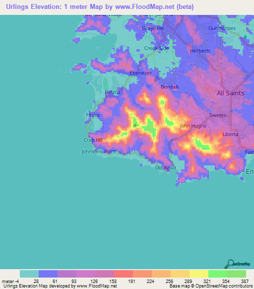 Note:Please note that Urlings,Antigua and Barbuda Elevation Map is in beta.