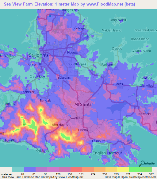 Note:Please note that Sea View Farm,Antigua and Barbuda Elevation Map is in beta.