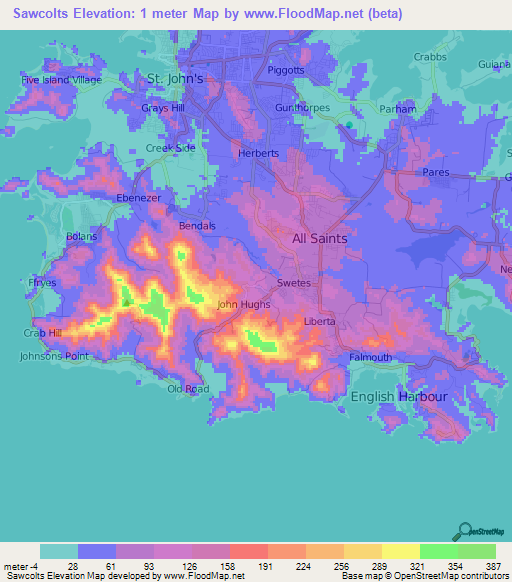 This Sawcolts,Antigua and Barbuda Elevation Map is licensed under CC BY-SA.