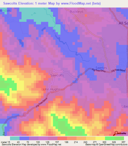 Note:Please note that Sawcolts,Antigua and Barbuda Elevation Map is in beta.
