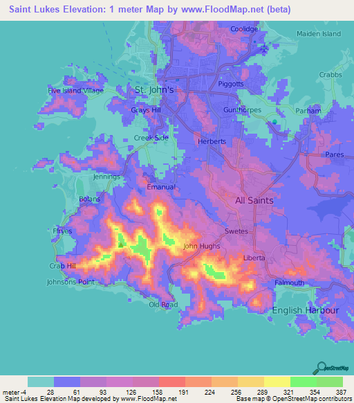 This Saint Lukes,Antigua and Barbuda Elevation Map is licensed under CC BY-SA.