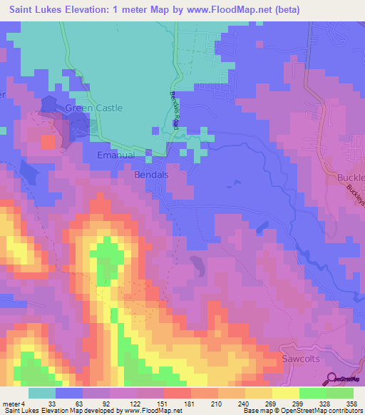You have to give credit by linking to this Saint Lukes,Antigua and Barbuda Elevation Map page.