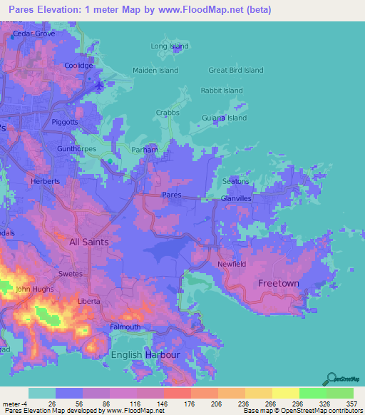 Note:Please note that Pares,Antigua and Barbuda Elevation Map is in beta.