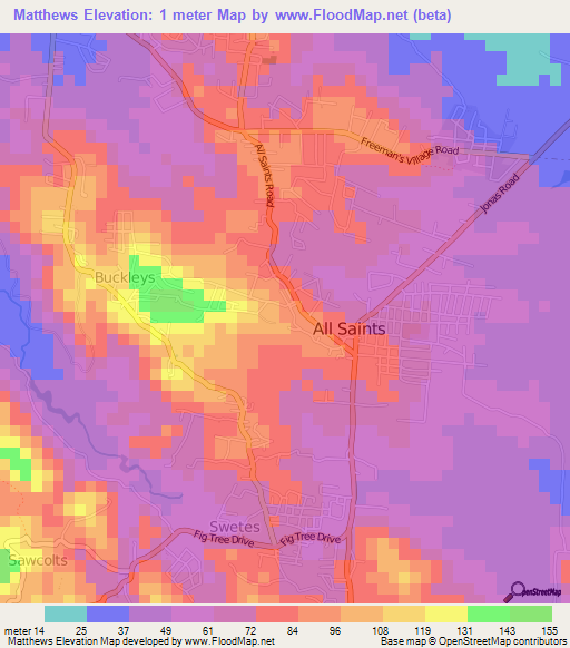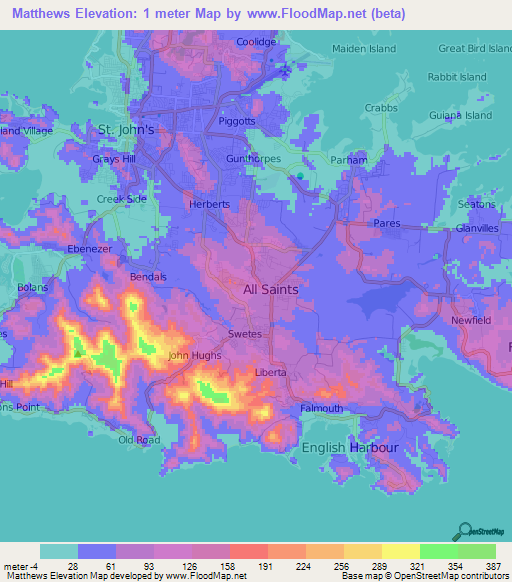 Note:Please note that Matthews,Antigua and Barbuda Elevation Map is in beta.