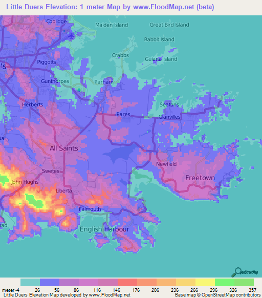Note:Please note that Little Duers,Antigua and Barbuda Elevation Map is in beta.