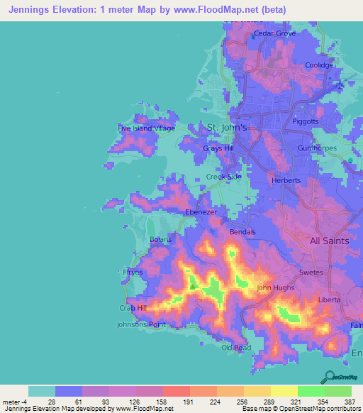 Note:Please note that Jennings,Antigua and Barbuda Elevation Map is in beta.