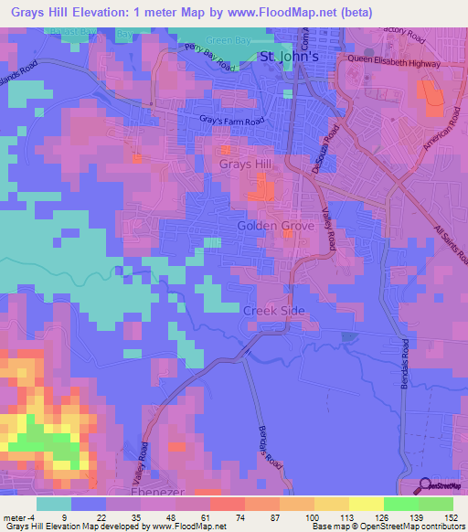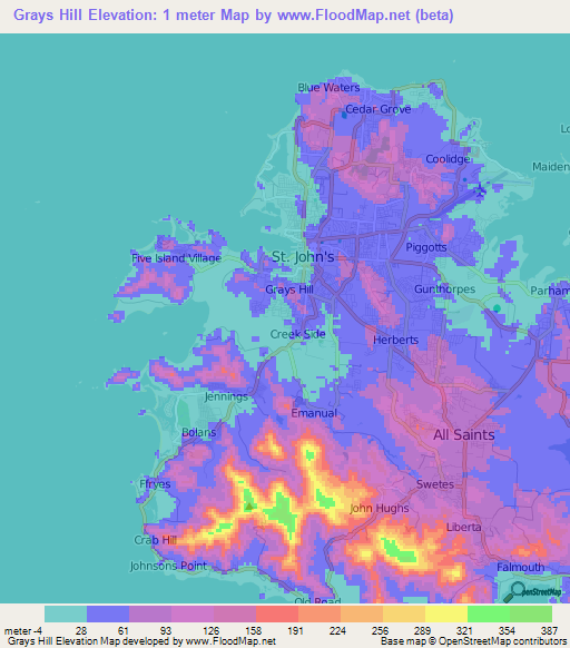 Note:Please note that Grays Hill,Antigua and Barbuda Elevation Map is in beta.