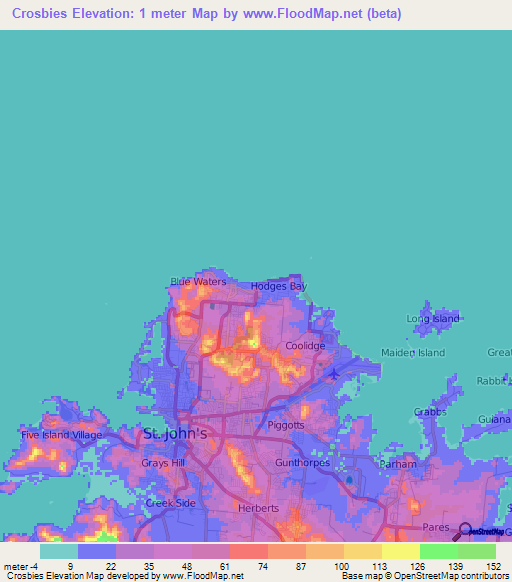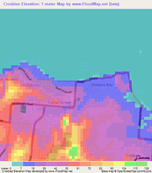 Note:Please note that Crosbies,Antigua and Barbuda Elevation Map is in beta.