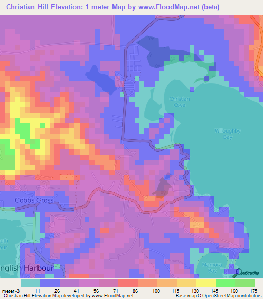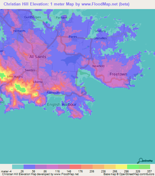 Note:Please note that Christian Hill,Antigua and Barbuda Elevation Map is in beta.