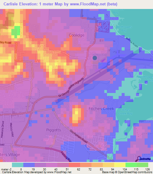 Note:Please note that Carlisle,Antigua and Barbuda Elevation Map is in beta.