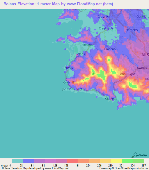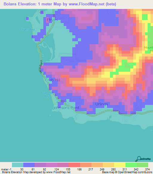 Note:Please note that Bolans,Antigua and Barbuda Elevation Map is in beta.