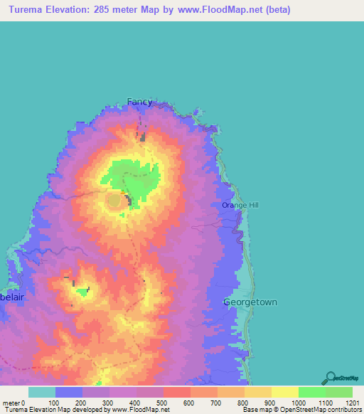 Note:Please note that Turema,Saint Vincent and the Grenadines Elevation Map is in beta.