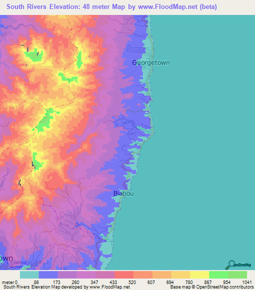 Note:Please note that South Rivers,Saint Vincent and the Grenadines Elevation Map is in beta.