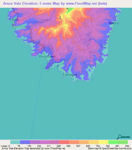 Note:Please note that Arnos Vale,Saint Vincent and the Grenadines Elevation Map is in beta.