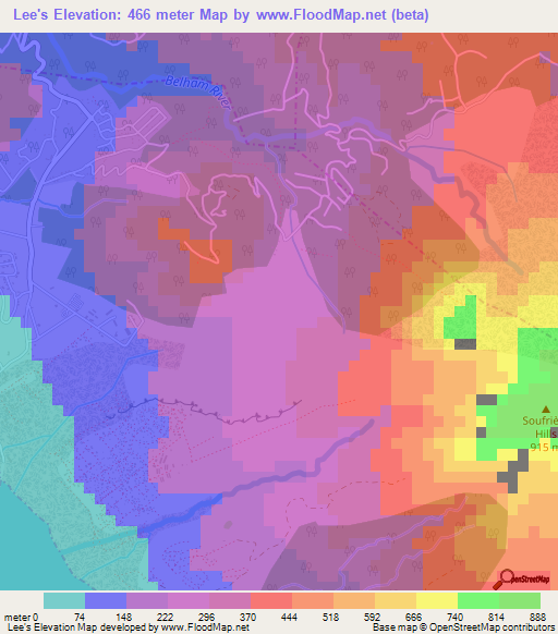 The elevation map of Lee's,Montserrat is generated using elevation data from NASA's 90m resolution SRTM data.