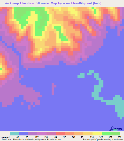 Note:Please note that Trio Camp,Belize Elevation Map is in beta.