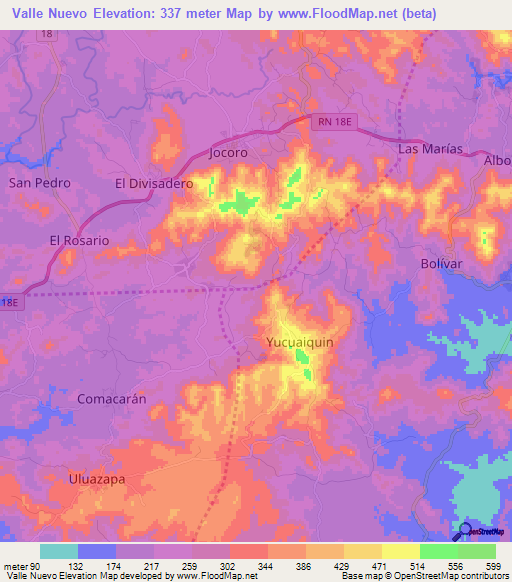 Note:Please note that Valle Nuevo,El Salvador Elevation Map is in beta.